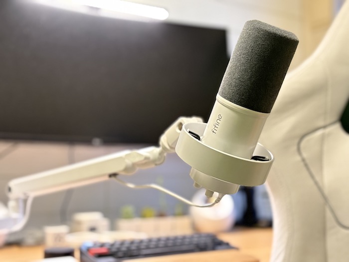 USB / XLR対応で、単一指向性(カーディオイド)のマイクです。ミュートやゲインまわりがまとまっていて扱いやすく、口元の声を拾いやすい。